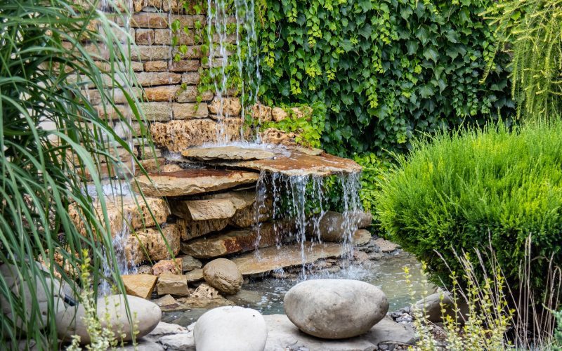 Standalone fountains can be amazing too. You’ve probably seen those classic tiered ones in parks, but nowadays people are doing some really cool things with wall fountains. Pondless waterfalls are becoming very popular. You get the peaceful ambiance of falling water without having to deal with maintaining an actual pond.